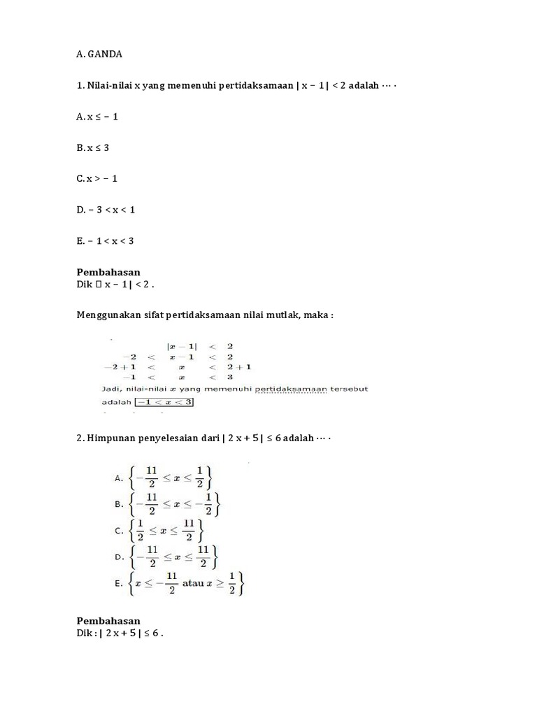 Rumus nilai x yang memenuhi pertidaksamaan. Maybe you would like to learn more about one of these? We did not find results for: Check spelling or type a new query.